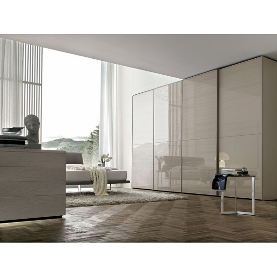 Finiture disponibili / anta incorniciata da un profilo rivestito in essenza o in finitura alluminio o laccato. Struttura armadio in tamburato, rivestito internamente in finitura sabbia. Fianchi esterni in essenza o laccati. La finitura del pannello dell’anta è disponibile nella gamma dei vetri colorati satinati o lucidi o millerighe, nelle due tipologie di specchi e in rovere termocotto. Larghezza vano*/ 90 | 98 | 117.2 | 136.2 cm Altezza/ 236 | 255 cm Profondità/ 67 cm * escluso fianchi e mezzerie