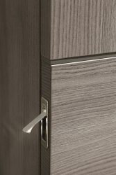 Finiture disponibili / anta realizzata con pannello in tamburato in finitura laccato opaco, lucido o poro aperto in essenza finitura frassino cenere e in materico essenza, poro aperto e opaco .