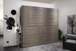 Ricercatezza materica e innovazione caratterizzano Puzzle, il nuovo armadio ad anta scorrevole di Tomasella Roma, disponibile in materico frassino Cenere.
