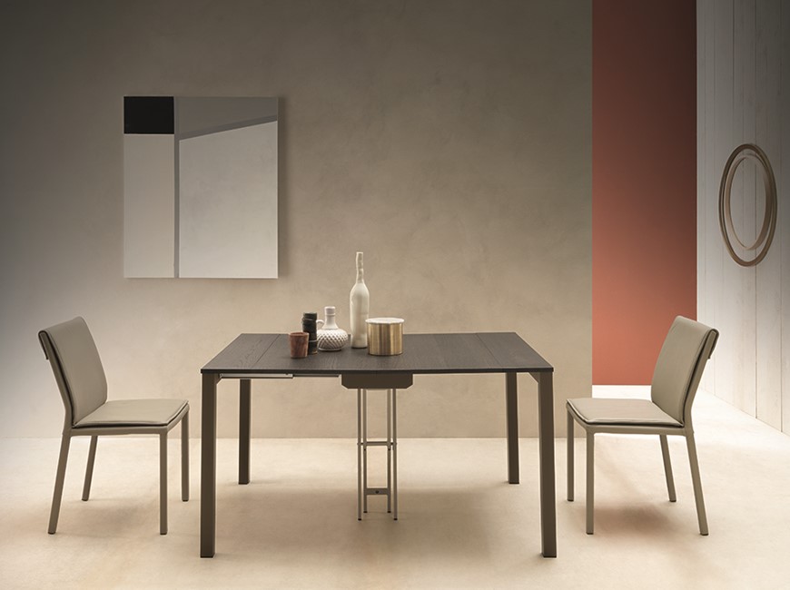 Quad, della Altacom Italia, è una consolle allungabile trasformabile in tavolo da pranzo. Può essere posizionata ovunque grazie alla sua limitata profondità (appena 40 cm), ma nella versione allungata ospita comodamente fino a 8 persone.