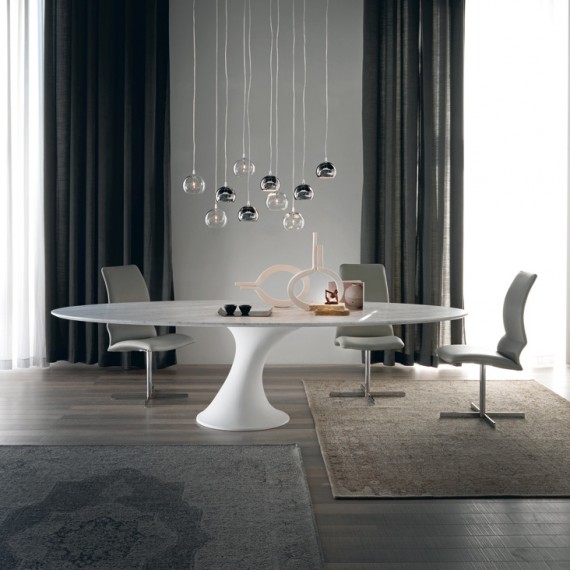 Reef della Cattelan Italia è un tavolo fisso con base in cristalplant bianco opaco.
