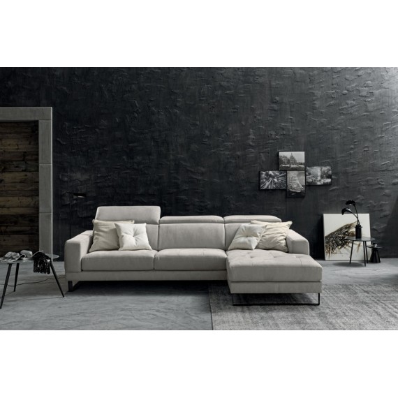 STRUTTURA Masselli portanti in abete di vari spessori. Fianchi di tamponamento in pannelli di particelle di legno in classe E1, particolari in pannelli di fibra di legno dura o cellulosa. Struttura rivestita completamente in resinato. MOLLEGGIO Schienale in pannelli di fibra di legno dura o cellulosa. Seduta in nastri elastici di fibra propilenica e lattice. IMBOTTITURA Cuscini schienale in lastre di poliuretano espanso indeformabile densita’ 25 kg/m³ rivestite in resinato. Cuscini seduta in poliuretano espanso indeformabile densita’ 30 kg/m³ rivestiti in resinato poliestere. RIVESTIMENTO In Pelle, Similpelle, Texil o Microfibra. Non sfoderabile. PIEDINI Piedini di serie in metallo cromato, piedini opzionali a slitta disponibili verniciati colore marrone, antracite o effetto cromo. CARATTERISTICHE DEL MECCANISMO Meccanismo del poggiatesta a scatto in acciaio cromato. DIMENSIONI Altezza seduta da terra cm. 45 Profondita’ seduta cm. 54 Larghezza bracciolo cm. 22 Altezza da terra struttura retro schiena cm. 65 Altezza piedino cm. 13