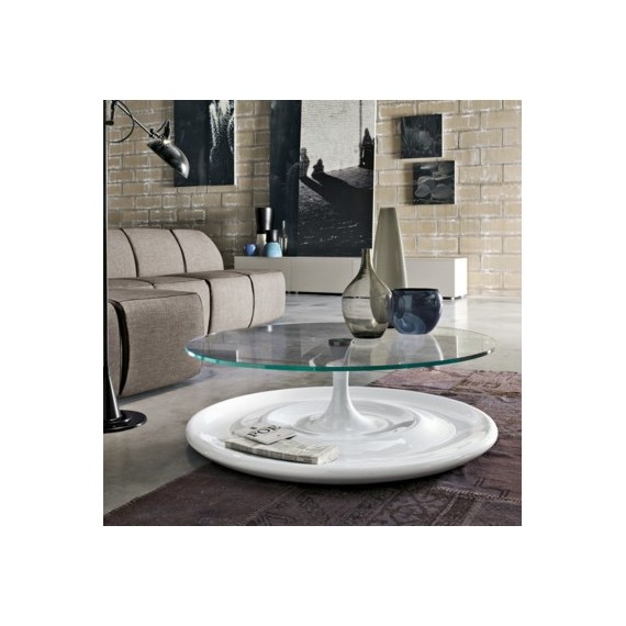 Tavolino con base realizzata in agglomerato di marmo e piano in vetro temperato. Splash si ispira all’acqua, ai suo riflessi perlacei per un tocco raffinato e senza età.