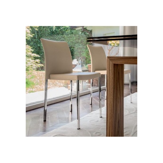 Sedia con struttura in metallo cromato e rivestita in pelle, pelle fiore, pelle nabuk, ecopelle o tessuto. Stella è impilabile per ovviare alle problematiche di spazio e sfoderabile.