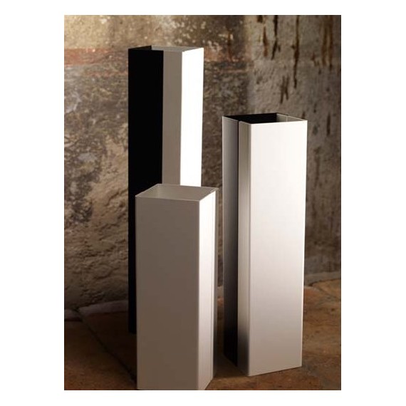 La pulizia formale del più assoluto minimalismo, che vive sul contrasto del colore e del non-colore, riduce i volumi alla loro autentica essenza.