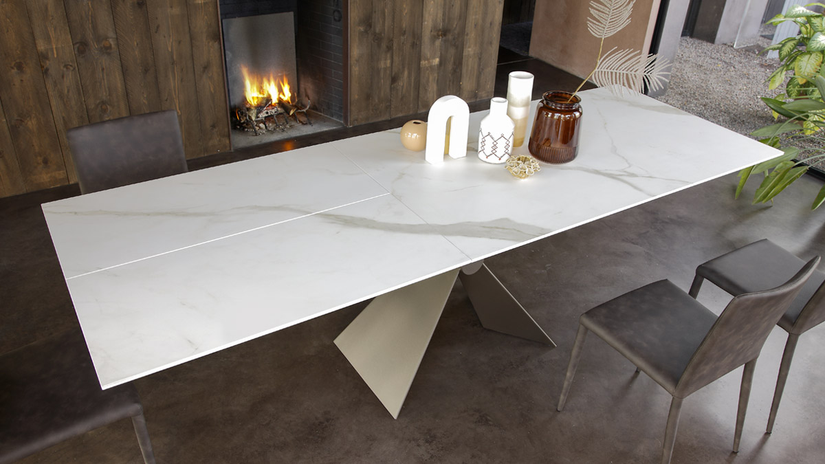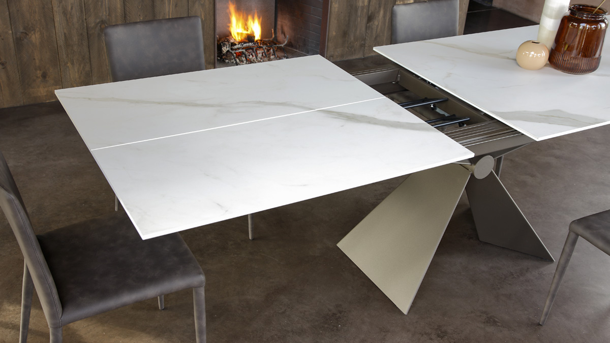 Il tavolo da pranzo allungabile Sintesi della Altacom Italia, unisce funzionalità e stile in un unico pezzo.