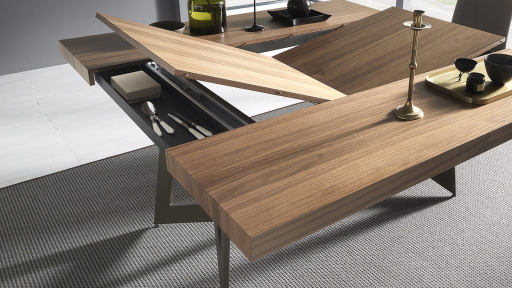Come il nome stesso fa intendere, il tavolo di design Sipario si “apre” in poche e semplici mosse, capace di accogliere da 4 a 8 persone.
