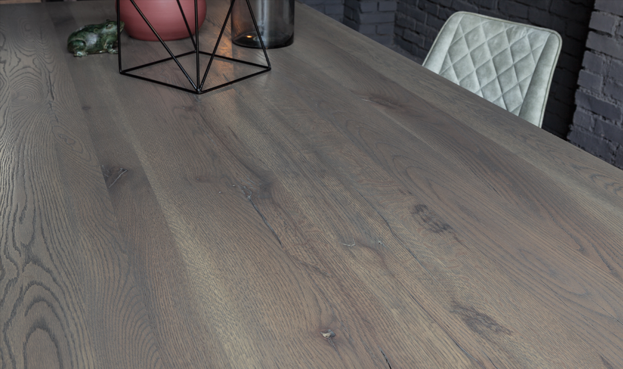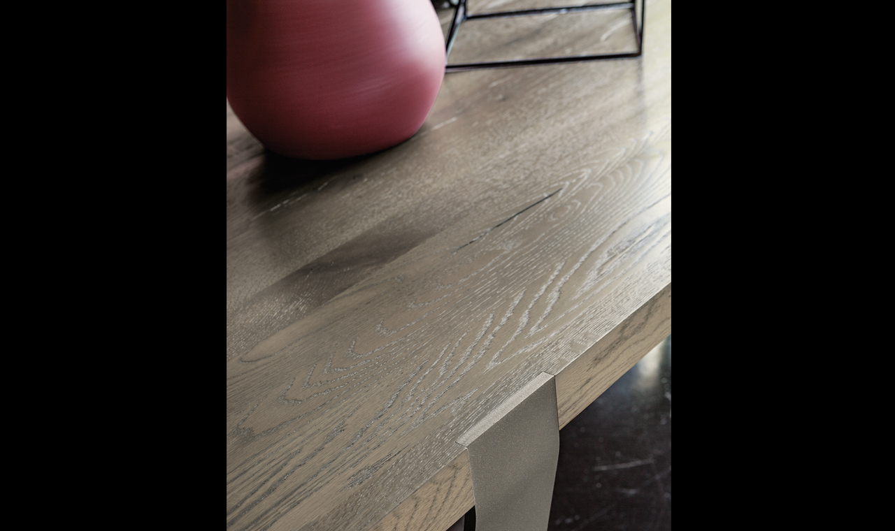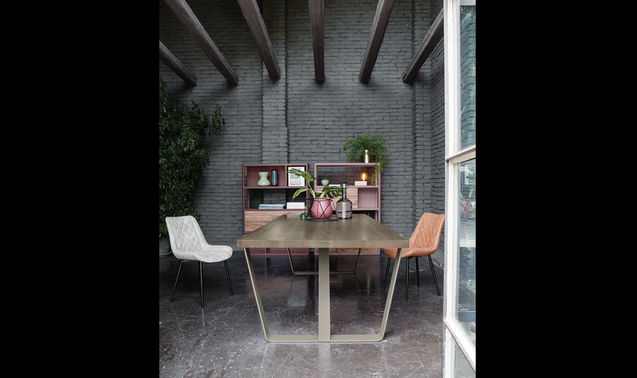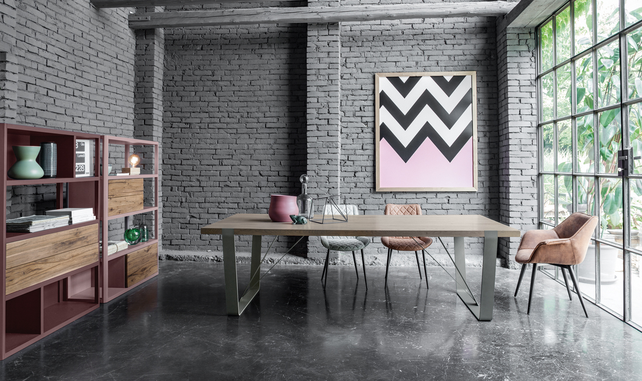Il tavolo moderno Magnum, della Devina Nais, è caratterizzato dalle venature e i nodi del legno massello, che creano un amabile contrasto fra natura e artificio.