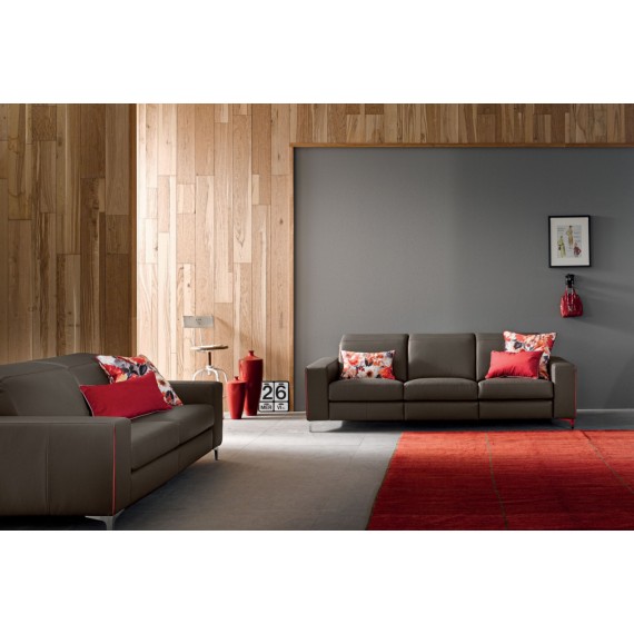 STRUTTURA Masselli portanti in abete di vari spessori. Fianchi di tamponamento in pannelli di particelle di legno in classe E1, particolari in pannelli di fibra di legno dura o cellulosa. Struttura rivestita completamente in resinato. MOLLEGGIO Schienale in pannelli di fibra di legno dura o cellulosa. Seduta in nastri elastici di fibra propilenica e lattice. IMBOTTITURA Cuscini schienale in lastre di poliuretano espanso indeformabile densita’ 18 kg/m³ rivestite in Tecnoform. Cuscini seduta in poliuretano espanso indeformabile densita’ 30 kg/m³ rivestiti in resinato poliestere. RIVESTIMENTO In Pelle, Similpelle, Texil o Microfibra. Non sfoderabile. PIEDINI Piedini in metallo cromato. CARATTERISTICHE DEL MECCANISMO Realizzato in metallo con movimento combinato di schienale reclinabile e sollevamento del poggiapiedi. Disponibile in versione manuale o optional in versione motorizzata con telecomando a filo. Meccanismo del poggiatesta a scatto in acciaio cromato. Con divano relax aperto ingombro posteriore +8cm. DIMENSIONI Altezza seduta da terra cm. 44 Profondita’ seduta cm. 58 Larghezza bracciolo cm. 21 Altezza piedino cm. 10