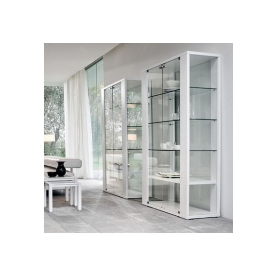 Vetrina con fianchi, schiena e ripiani in vetro temperato e struttura di supporto rivestita in legno in diverse finiture. Dalla semplicità nasce Aurora una vetrina che si adatta agevolmentea tutti gli ambienti domestici. Disponibile anche con faretti.