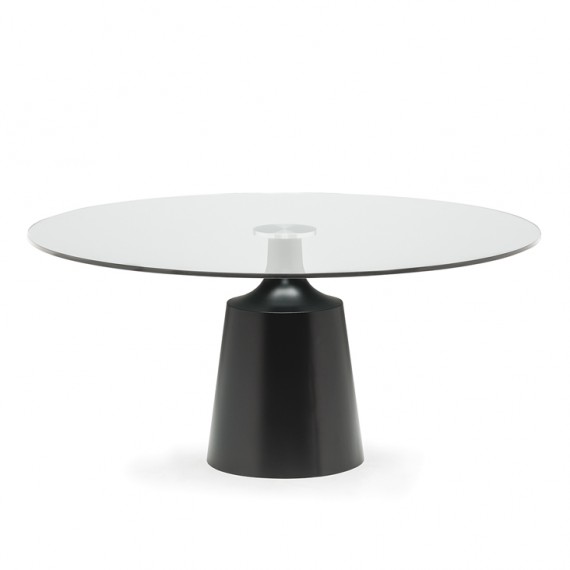 Yoda della Cattelan Italia è un tavolo fisso con base in acciaio verniciato titanio satinato, goffrato bianco, nero o graphite.
