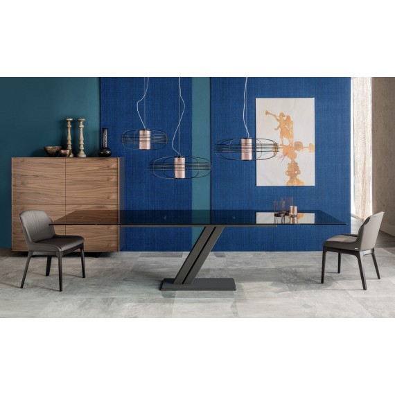 Zeus Keramik Drive della Cattelan Italia è un tavolo allungabile con base e binario in acciaio verniciato goffrato bianco, graphite o nero.