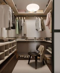 Aumentando lo spazio aumentano le possibilità di dinamismo del guardaroba, una stanza a parte ricavata per lo più dalla zona notte, dove si intervallano lungo le pareti scaffali, ripiani, mensole, colonne/armadio, scarpiere. Il tutto può essere coperto da ante scorrevoli in vetro semitrasparente, che proteggono gli indumenti ed allo stesso tempo li rende ben visibili ed a portata di mano.