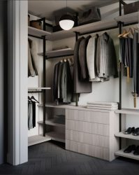 C’è chi utilizza maggiormente indumenti che hanno la necessità di essere appesi e quindi dovrà progettare la sua cabina in modo tale da avere molti spazi verticali, o chi al contrario ha necessità di molti cassetti o ripiani orizzontali, dove poter ripiegare i vestiti o riporre le scarpe.